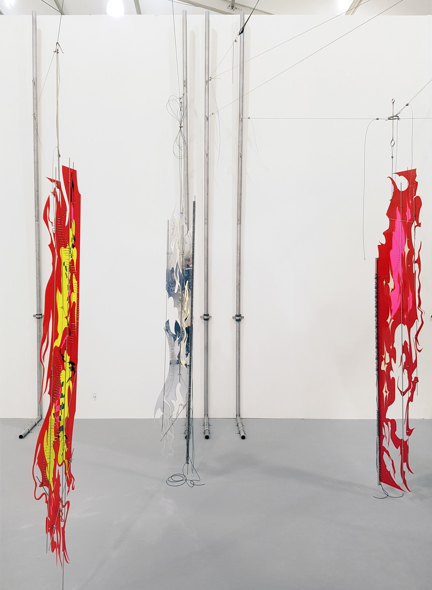 Acrylic is Valerie Keane’s medium of choice. Her dangling, inorganic sculptures bring to mind the abstract work of fiber artists like Françoise Grossen and Eva Hesse—that is, if they’d traded their ropes for wires and plastic. A standout at last spring’s Frieze New York, Keane also produced a solo show at High Art in Paris that was a hit of the fall.