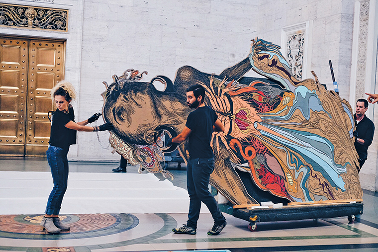 LIBRARY STREET COLLECTIVE, Detroit, Michigan After dissolving their partnership in Detroit’s Long-Sharp Curis Gallery five years ago, JJ and Anthony Curis decided to start Library Street Collective, focusing on work by contemporary artists who “have developed their skills and visual art in public spaces.” “There was so much graffiti and street art in the city at that time as it was falling into bankruptcy,” says director Sara Nickelson of the downtown gallery’s embrace of artists like Futura, Swoon and the Faile collaboration. “The gallery became this conceptual middle ground for the city and people, but it’s evolved with the artists as well.” In the “BELT,” an outdoor exhibition space curated by the gallery, murals have been commissioned from Nina Chanel Abney, Cleon Peterson and Shepard Fairey. “When we work with artists on shows, we usually look to do something in the city as well,” says Nickelson, noting they helped the Detroit Institute of Art acquire Swoon’s Thalassa and install a mural in the historic Jefferson-Chalmers district. They also assisted San Diego-based artist Kelsey Brookes, who will have a solo show with the gallery opening in April and has secured a commission for a 19-foot panel filled with hypnotic golden ratio sequences for the lobby of One Woodward Avenue. “They are helping to make art available to everyone in their community,” says Brookes. “And that is something to celebrate.”