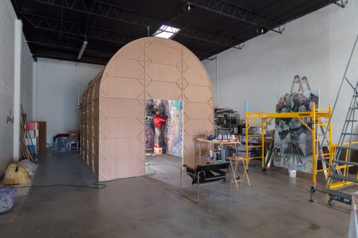Is there a statement being made about access or appropriation? Since 2012, I have been interested in using icons as foundations for my large scale painting projects. In The Chapel, I am using an iconic structure. As a Mexican-born American citizen, my identity as that of a transnational citizen continues to influence my work. I pull from an archive that references ideas that traverse through borders, an abstract allegory for my identity. Inside The Chapel, I paint imagery from a collapsed archive that draws on a range of works significant to the history and practice of painting, sculpture, architecture and cultural producers more broadly.