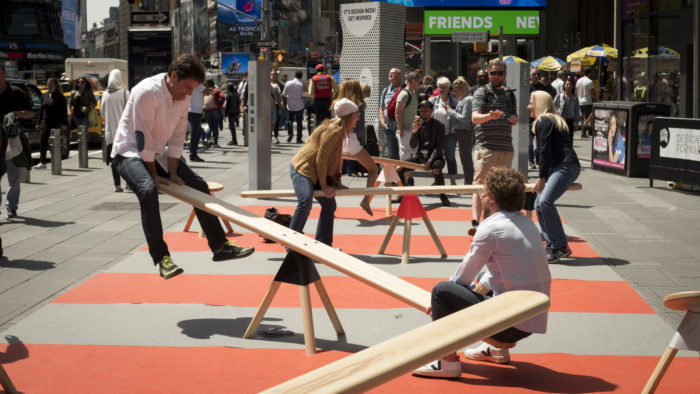 Allen: The design world is very good at impressing itself. Most of the shows during NYCxDESIGN are business to business. Of course, it’s a fun business so I would encourage everyone to go see all of the shows that go on during this period, but Ilene and I both feel that design and the stories it can tell have broader appeal. Our partnership with the Times Square Alliance allows us to reach millions. Last year in our four days in Time Square, on three blocks we had about 1 million people; this year on all five blocks for nine days we are giving a conservative estimate of 3 million. The population in Times Square is very diverse, it includes tourists from all over the world, business people from the area—we are expecting that the design community will come up also. We have some amazing designers and companies showing with us this year.