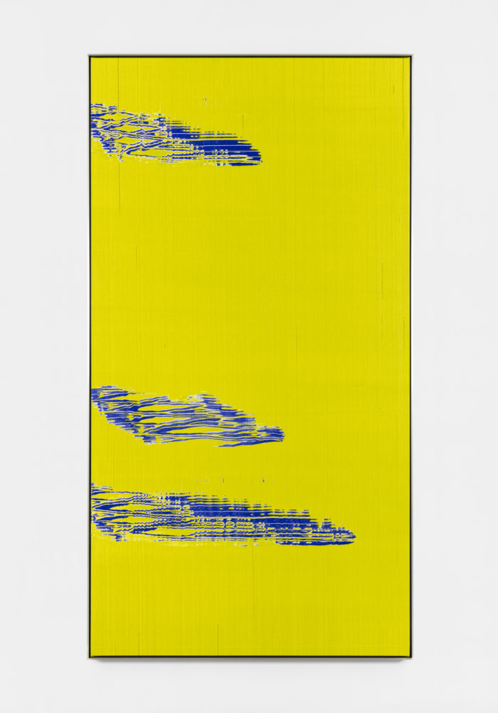Auerbach talks about this work from a place of humility—she tried it that way because of a lack of ability on her part. “I couldn’t paint a perfectly creased, crumpled surface,” she says. “So I folded up the canvas.” And she connects that development to the development of the Flow Separation paint job. “I’m not a virtuosic painter,” she says. “And I feel like in order to create something, I have to use a strategy. I say that to myself all the time, ‘Ingenuity over virtuosity.’”