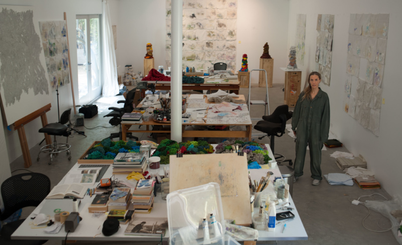 Liza Lou in her Topanga Canyon studio photographed by her husband, Mick Haggerty.