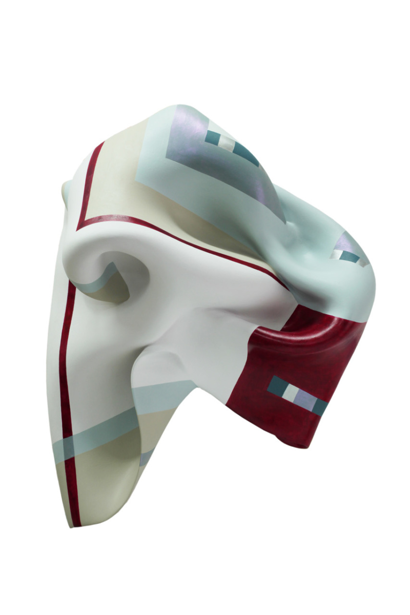 1. Marela Zacarias’s Atl, 2019, $6,900 Despite being sculpted from rock-solid plaster, Marela Zacarias’s wall-mounted sculptures mimic and interrogate the qualities of fabric—its sinuousness as it bunches and folds, and the family history it carries in its patterns. As an artist of Mexican-Lebanese descent, Zacarias pays homage to textiles of the Mediterranean with her painted geometric patterns.