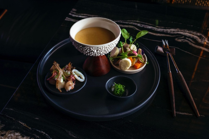 What kind of experience are you aiming to cultivate at Kaido? We want to offer a new experience for any evening craving you have. The bar offers amazingly creative and delicious cocktails from Nico de Soto that are perfect in the Japanese-Luxe-Punk design of Kaido from designer Mark Alan Diaz (MAD Design), with whom who I traveled to Japan for inspiration. It’s sleek and sexy, with a chandelier that is over 30 feet long and contains over 1000 golden butterfly knives in it, to represent a sea urchin. You can find inspiration from the sea urchin on the menu with our signature Uni Fondue, which is made to share at the table and be interactive; the synergy of all the pieces is what makes Kaido so special.