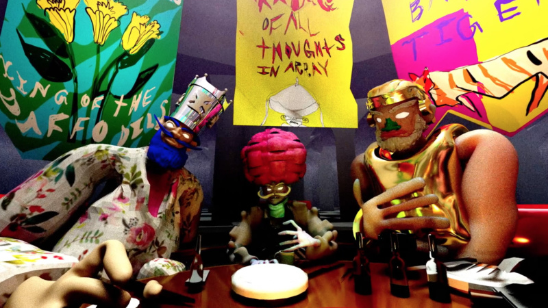 Jack Wedge In Goodbye Mommy, Jack Wedge brings to life a cyberpunk underworld. His 3-D animation style is somewhere between Bauhaus theater and the Gorillaz, and the film’s creepy, wondrous atmosphere is soundtracked by Arca’s dark pop music. The protagonist is a hardboiled detective, referred to simply as “the detective,” who gets a call from “the queen” soliciting his assistance in finding her baby. Rich in visual details, wonky motion, and fantastic world-building—all with a strong sense of narrative and character development—Goodbye Mommy is a warbly, futuristic film noir for k-hole frequenters.