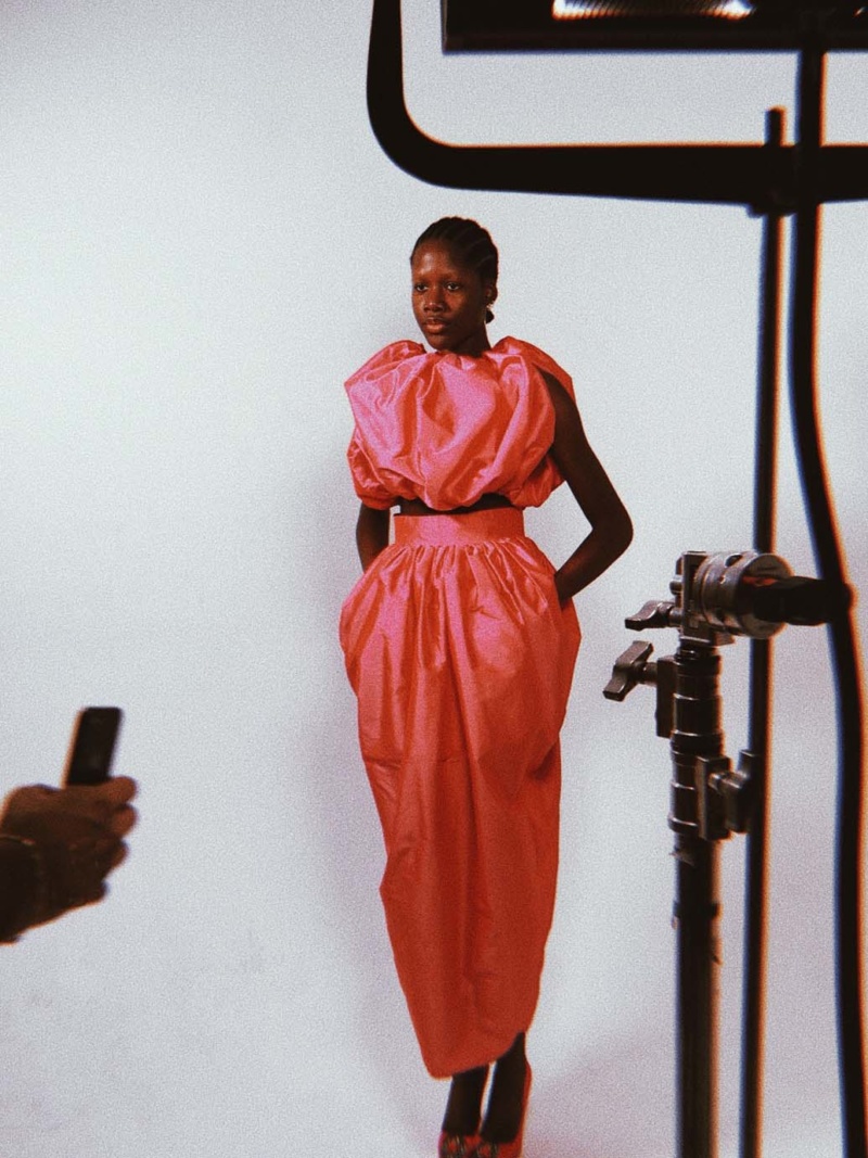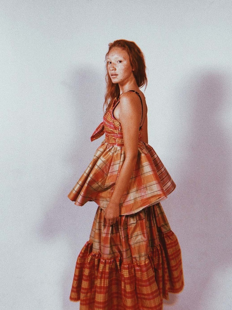 It’s the early afternoon before Christopher John Rogers’s Fall 2020 show at New York Fashion Week and the designer is sitting between garment racks as his busy team is rushing to prepare. Rogers may be only twenty-six, but he’s already become an industry favorite, best-known for his volume-heavy silhouettes and unusual approach to color; when we meet, he is wearing a scarlet red shirt, rusty brown jacket and deep green pants with tan Margiela Tabi boots.