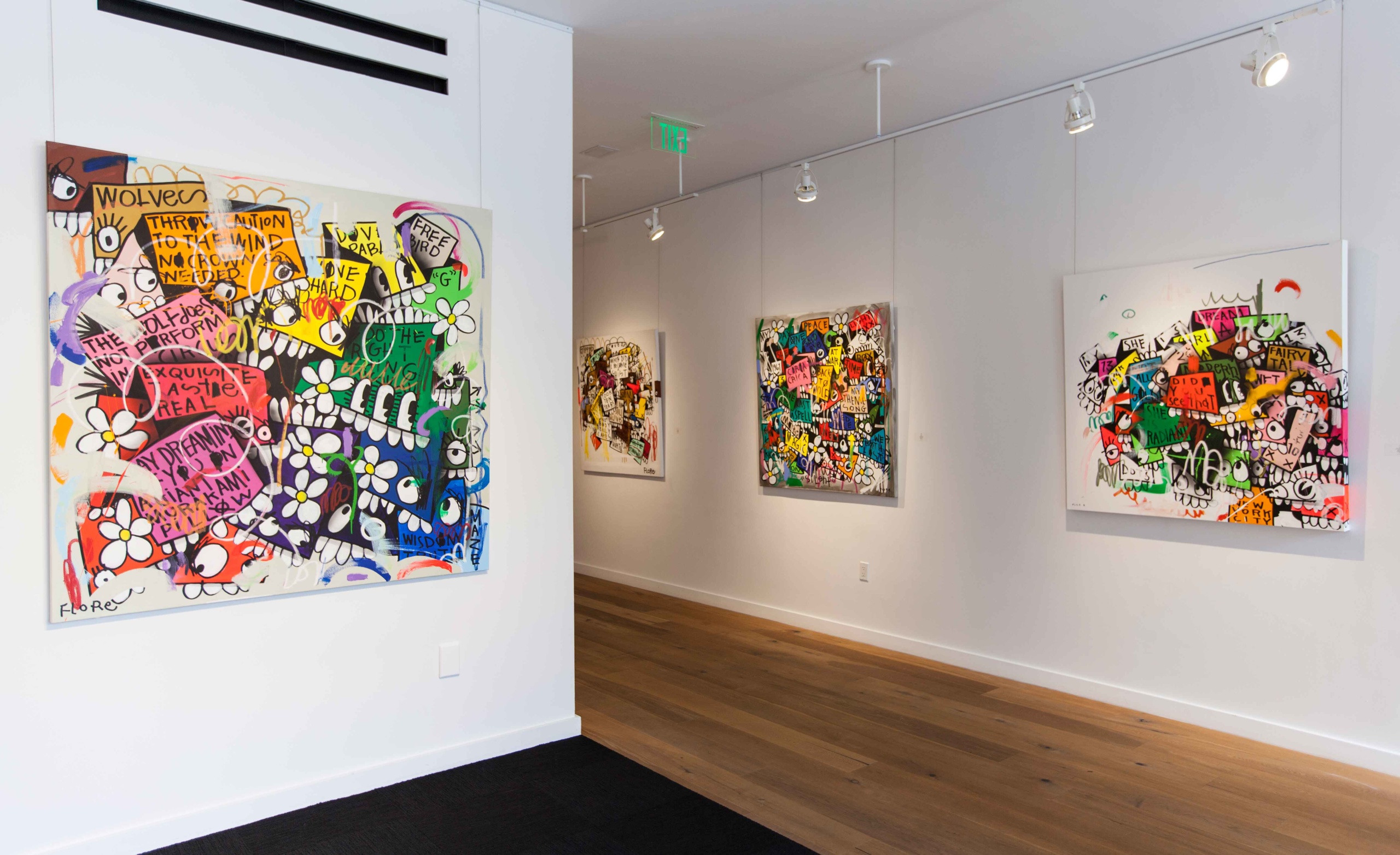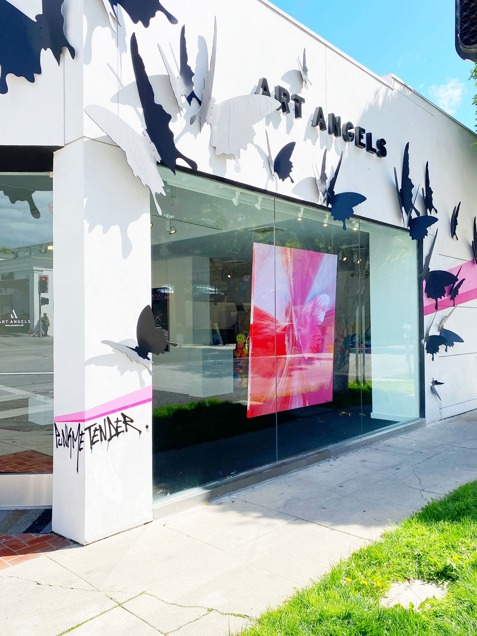 Napal and Emery have continued to innovate in their novel use of digital platforms, using, for example, walk-through technology for their exhibitions online through which collectors can experience a leisurely stroll through the gallery from the safety of their own home. They curated “A Battle Won” with artist PUNKMETENDER, virtually—it had been due to open the first week of the mandatory closure of the LA gallery—which was able to be viewed online in 3-D. The gallery even used their brick-and-mortar space in LA during quarantine by extending the physical PUNKMETENDER show outside the gallery by way of a mural spanning 100ft around the building. It was important to the duo “To be able to bring his positive message to the exterior of the gallery and shine a light of positivity in what was (and is) a really stressful and upsetting time.” Art Angels plans to continue building on such experiences, incorporating full immersion both in- and outside of the gallery and throughout the city, with larger-than-life installations. Their upcoming fall show with leading light artist Olivia Steele will feature new ways to experience the exhibition, offering collectors an opportunity to participate in a socially distant “sound bath” within the gallery.