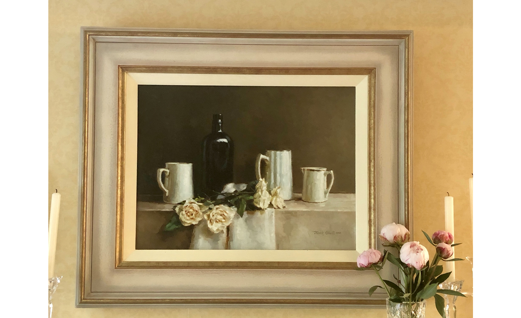 The Art: In a nod to her heritage, Chawke’s artworks are mostly by Irish artists and are colorful pieces that make her happy. “My art is all uplifting, at least to me,” she says. Take the work, The Field Inspectors, by realist painter Mark O’Neill, for example, which depicts three children hanging over a fence to gaze at a field. “Both my husband and I grew up in rural Ireland, and it reminds me of our childhoods in the countryside,” says Chawke. Then there are several paintings by Roisin O’Farrell, a well-respected artist known for using textured oils. One is of four pairs of boots at the entryway of a home—an image that also takes Chawke back her upbringing. And while all of her art is personal in some way or another, she says that her most poignant work is by Robert Devereux, of her dog Louie, who passed away in 2015. “Robert and I went to college together, and I actually commissioned him for the painting,” she says. “It’s a beautiful portrayal of someone we loved so much.”