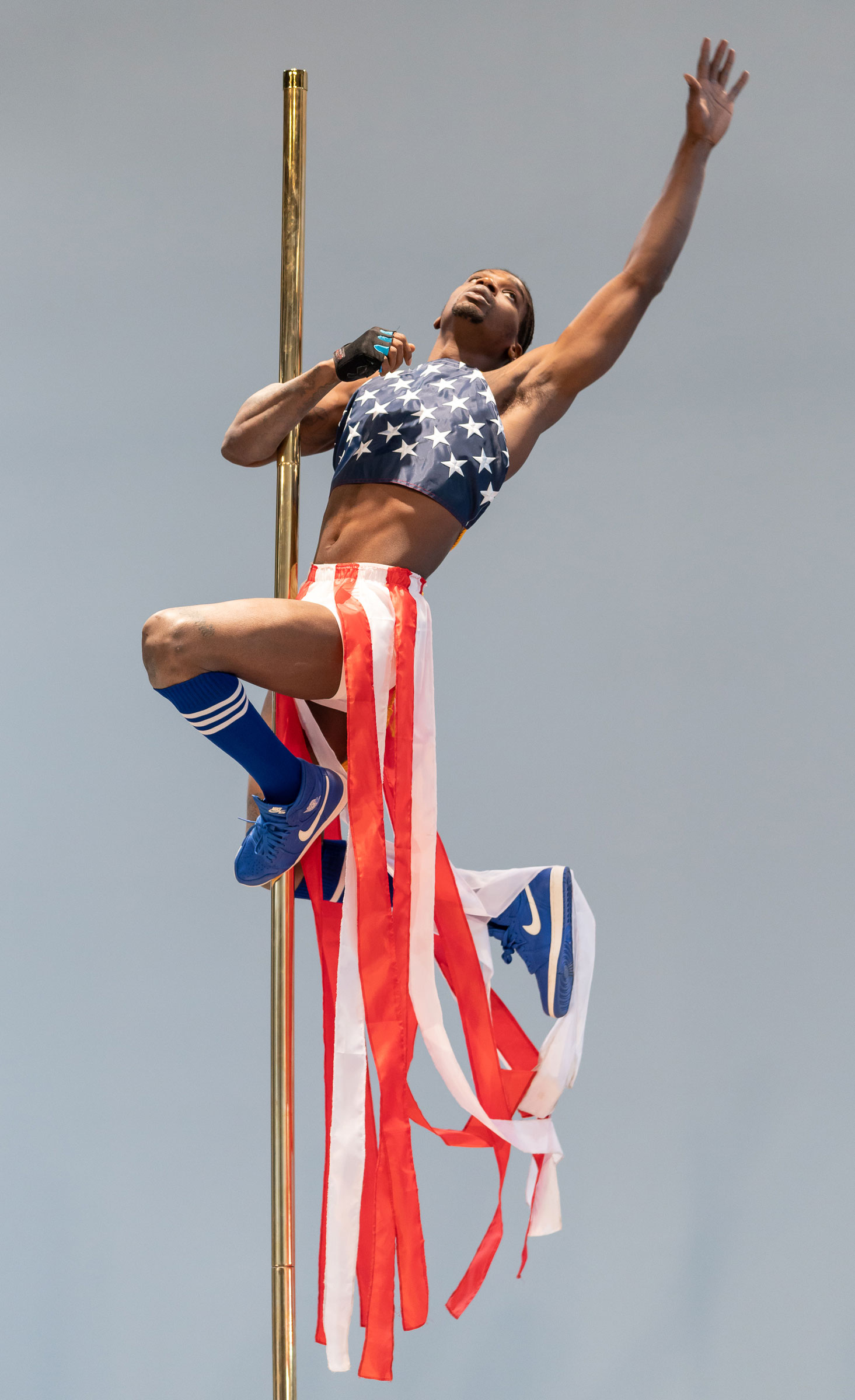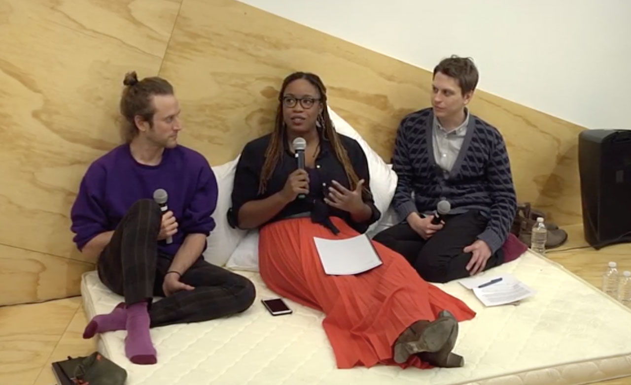 McGhee was a performer in Gerard & Kelly’s Timelining, which took place in 2015 in the rotunda of the Guggenheim Museum, and joined the artists for an “In Bed With…” public conversation the year prior, held on mattresses at the New Museum during Gerard & Kelly’s six-month residency, that explored how race, class and sexuality intersect in pole dancing. That research became the springboard for the artistic duo’s latest project, State Of, performed around and on a dancing pole at MOCA during Frieze LA earlier this year.