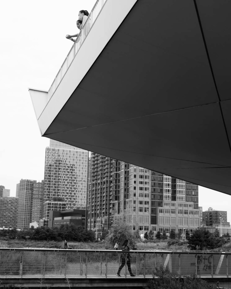 Third, the now two-year-old Hunter’s Point South Waterfront Park sprawls across eleven-and-a-half acres on the eastern bank of the East River. Designed in collaboration with SWA/Balsley, the park is one component of a broader transformation of western Queens and it gives the sprawling residential mega-development next door a stunning front yard with breathtaking views of the Manhattan skyline, especially from the prow of its cantilevered walkway- belvedere. “Other city parks closed down,” observes Weiss, “but this one stayed open”—albeit with less than its usual share of routine maintenance. Its native grasses may look a bit shaggy, but the park is still a welcome refuge for nearby residents desperate to get out of the house.