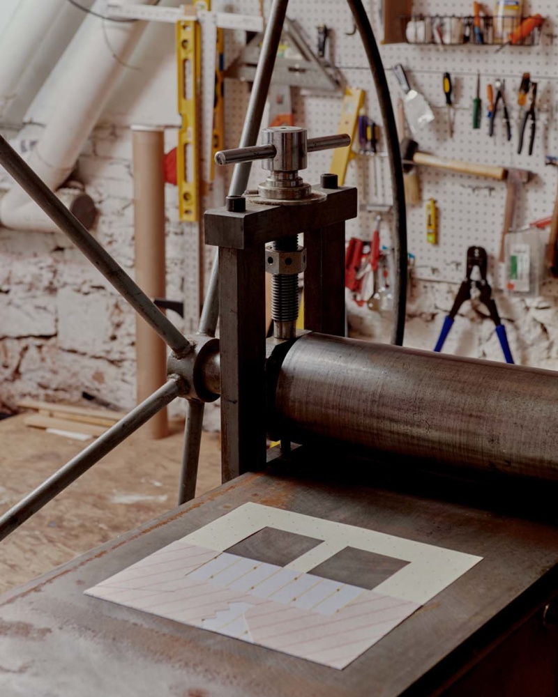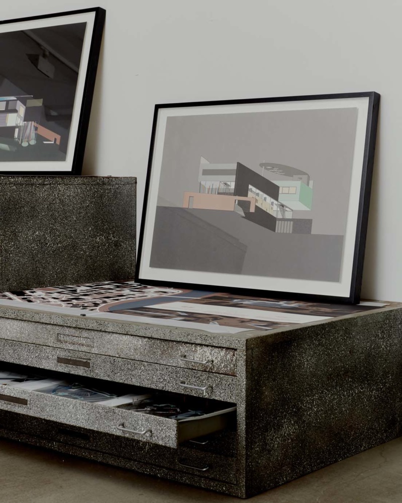 The origin of a83’s physical abode runs in Nichols’s family. From 1978 to 1992, it was home to his father’s print shop, John Nichols Printmakers and Publishers, where he amassed an archive of work by now well-known designers like Steven Holl, Frank Gehry, Michael Graves and Elizabeth Diller. “At first, the shop worked with prominent artists but quickly shifted over to the architecture world and began making fine art-quality print editions,” says the younger Nichols, explaining that the prints were used for both “paper projects and competition entries.” The a83 archive now encompasses these contents, and the trio plans to continue in the footsteps of the space’s earlier occupants—with a twenty-first-century twist. “We have a gallery that is mostly not selling work for commercial purposes, but instead creating experimental installations for architects and designers and serving as a printmaking workshop for people to produce editions,” he says. In its three- pronged organization, a83 supports exhibition-making by selling editions of the archive material printed on the Riso. “But we’d also like to open up the printmaking workshop to people to use and have educational workshops, and to open the archive for researchers.”