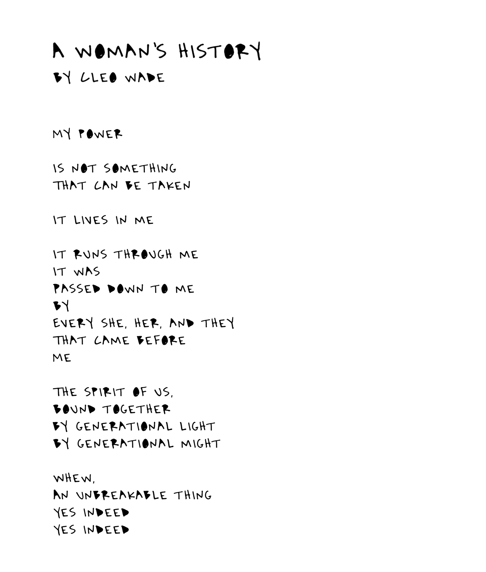 Cleo Wade is a bonafide Renaissance woman. A poet, author, artist and activist, Wade centers femme empowerment—a cause near and dear to her heart—intentionally in all of her work. Her poignant poems and artistic projects are affirming, and have made the Heart Talk: Poetic Wisdom for a Better Life writer a source of inspiration for many, both on Instagram and in real life. During the last four years of the former White House administration, the creative was compelled to use her work as a truthful record of the nation’s social underbelly. She saw her words on protest signs at Black Lives Matter marches and used to tell the larger stories of our times—career highlights, she says—and wanted them, too, to reach the younger generation.