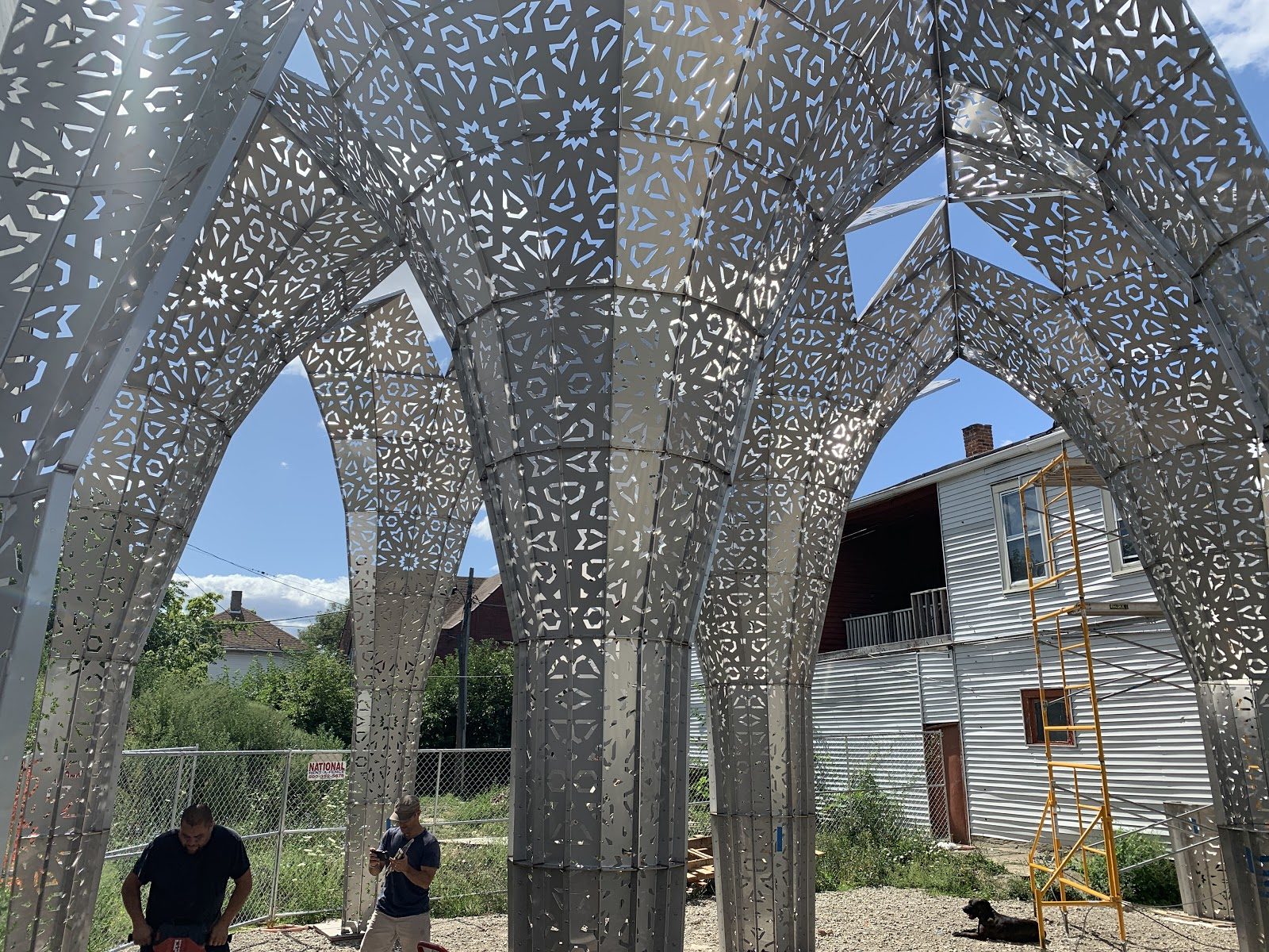 Installation image of American Riad by Ghana ThinkTank under construction, 2019. Photography by John Ewing.
