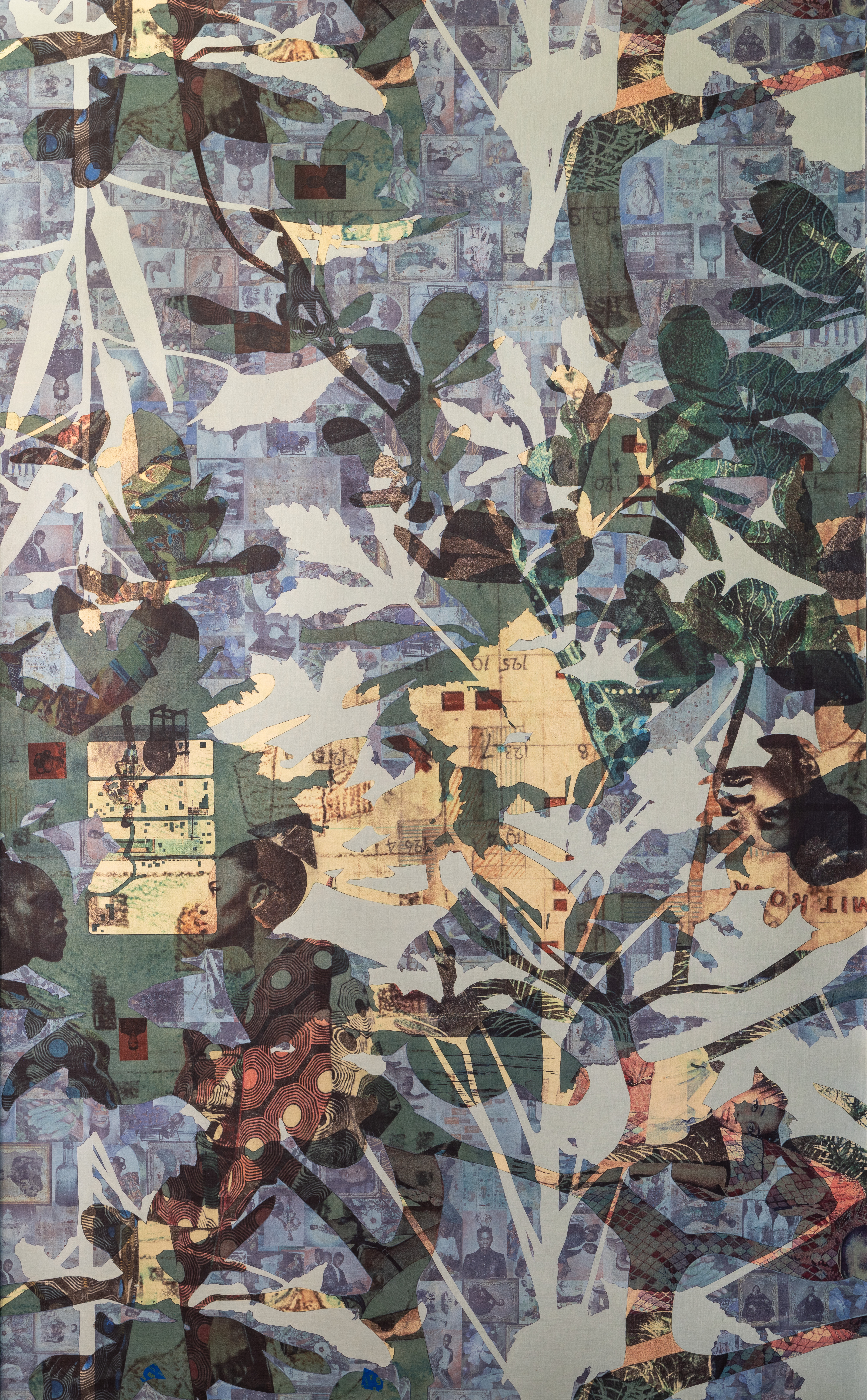 Detail of Njideka Akunyili Crosby's Thriving and Potential, Displaced (Again and Again and…) installed in "Before Yesterday We Could Fly: An Afrofuturist Period Room."