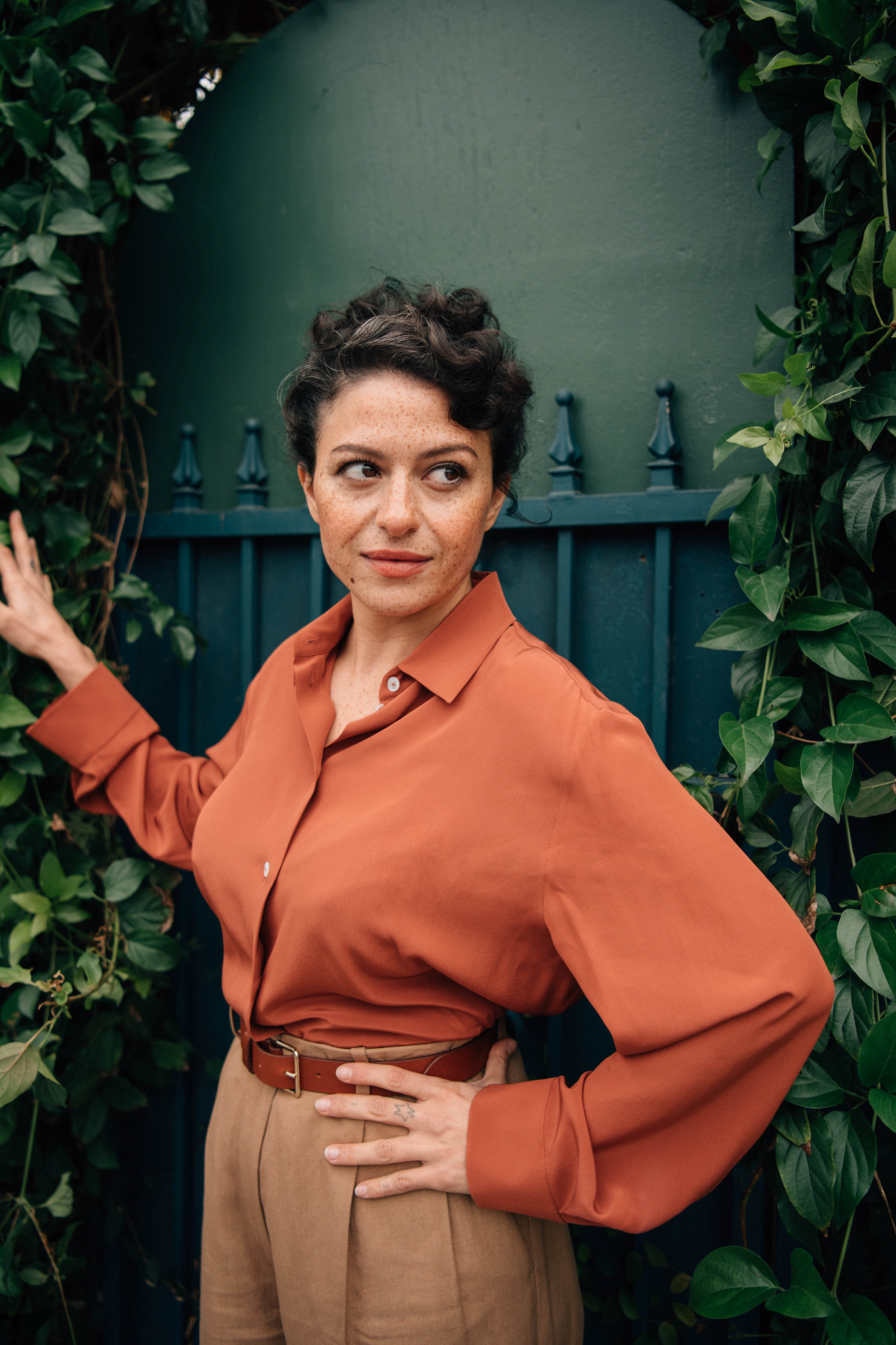 Over Zoom, Shawkat sits in a well-lit room, her dark hair held in two black velvet bows. The sunlight flooding in from the windows almost forms a halo behind her. It’s the kind of effortless cool that we’ve come to expect from Shawkat, the jaunty and sophisticated actor most known for her roles in two cult-classic television shows; Arrested Development and now Search Party.