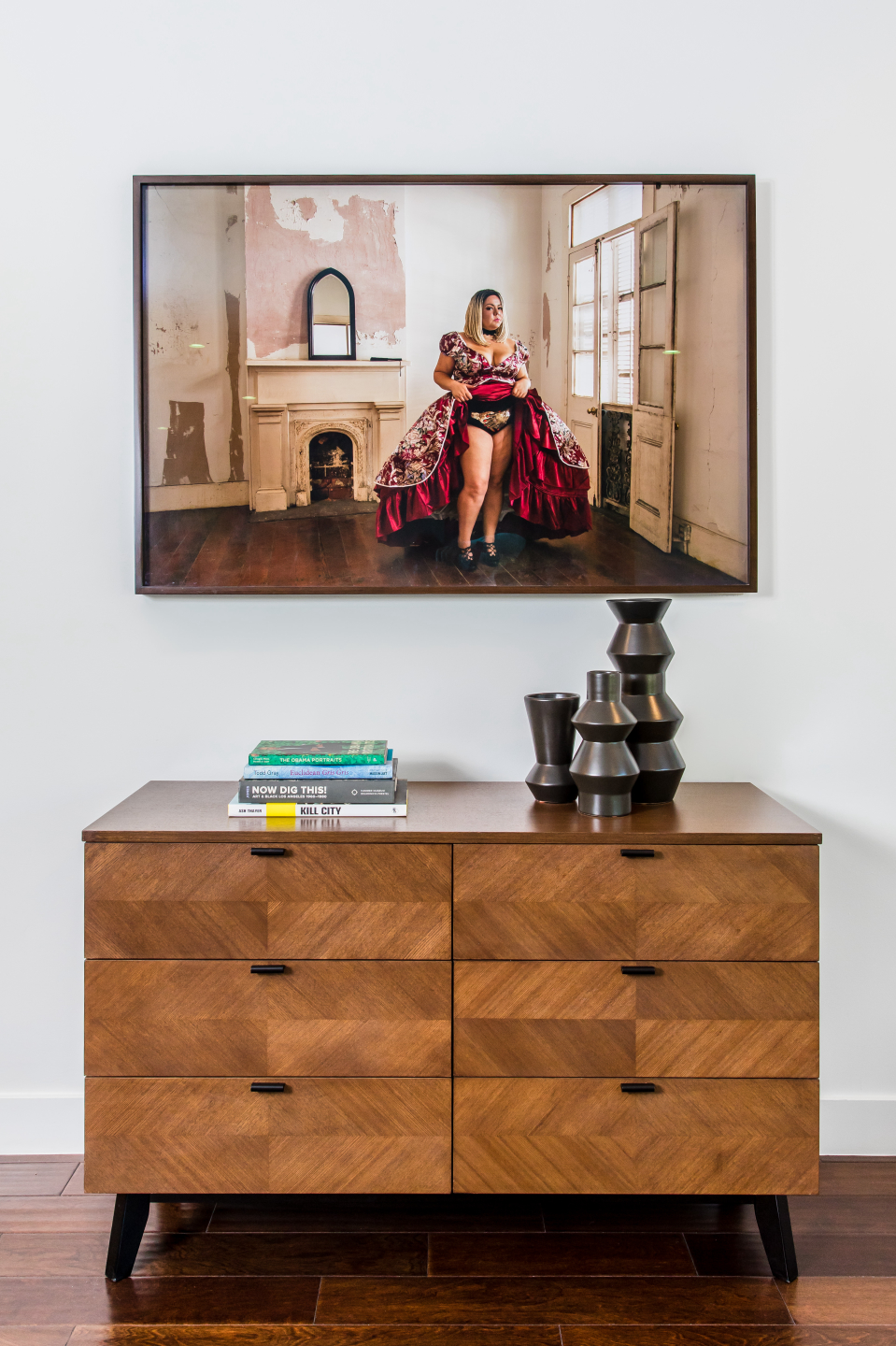Genevieve Gaignard's Mahogany Hall (Belle of the Ball), 2017 hangs over a console.