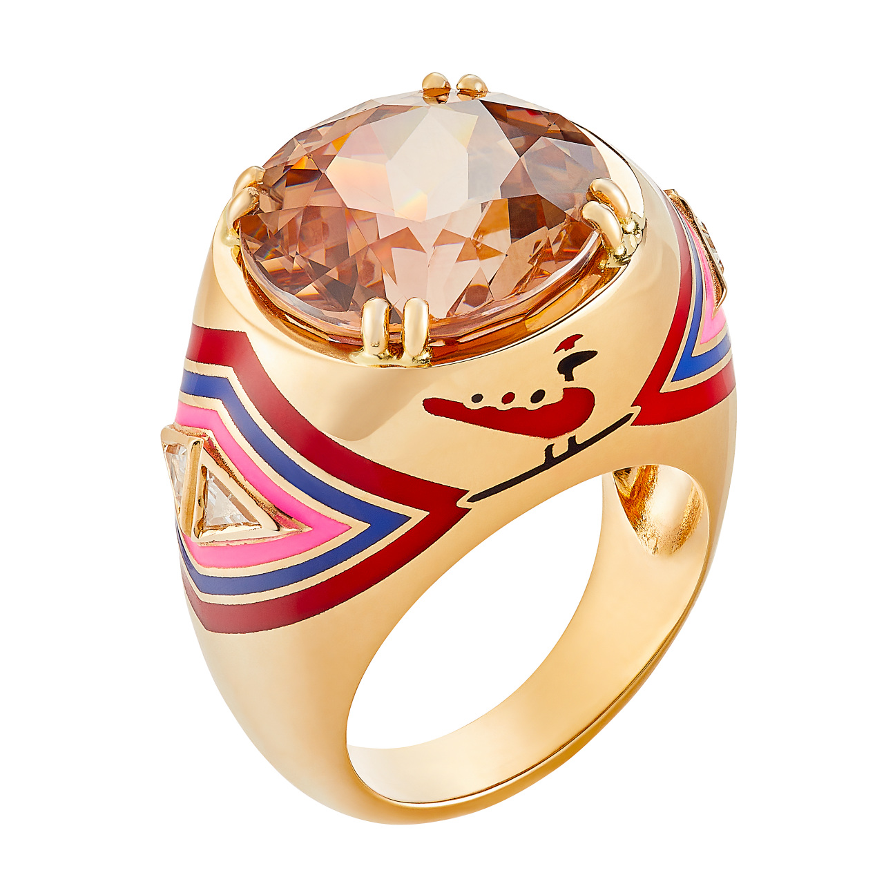 Alice Cicolini, "High Sari Boulle" Ring; 9.11ct Brown Zircon, 14ct Yellow Gold, Lacquer Enamel, $23,063