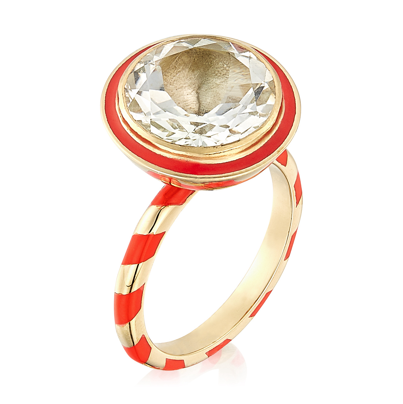 Alice Cicolini "Memphis Triple" Ring: White Topaz, White Diamond Triangles (1.2ct), Spinel Pave (0.22ct), 14ct Yellow Gold, Lacquer Enamel, $14,136