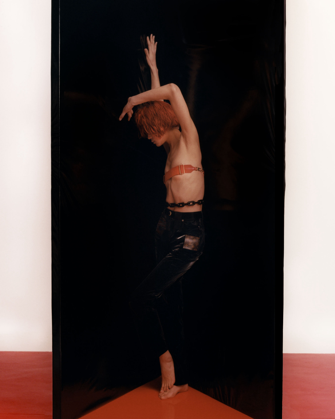 Models: Xue Huizi, Seohyun Kim and Lian Koster. All accessories and clothing by Louis Vuitton. Makeup by Celia Burton. Hair by Hiroshi Matsushita. Nails by Sasha Goddard. Set design by Sean Thomson. Casting by Timoer Nulens.