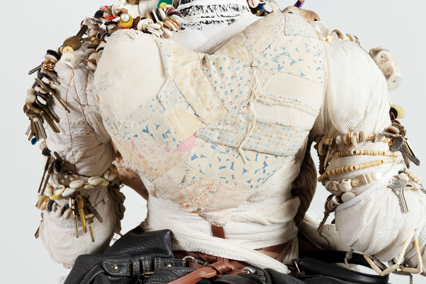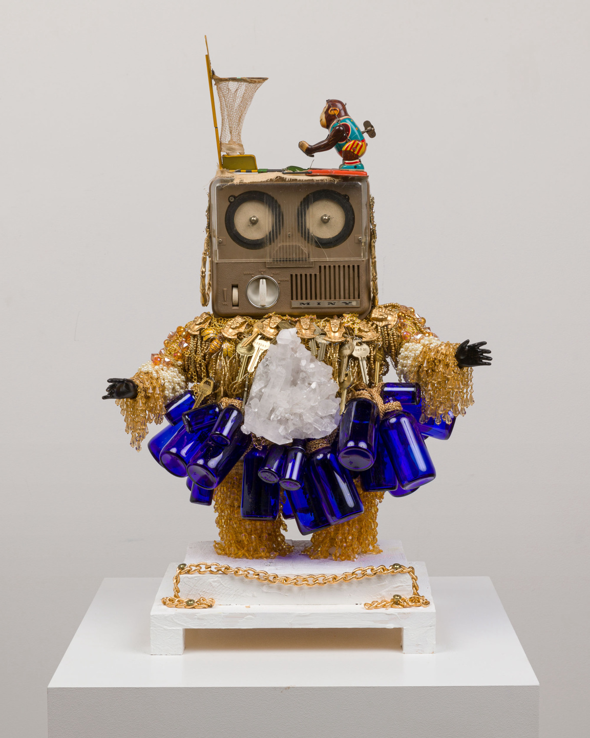In allowing the unnamable dimensions of being, such as ancestral wisdom, to guide her, german’s work rescues our collective psyche from the white supremacist myth that we, as humans, can separate and control the happenings of our everyday lives. In particular, german’s “power figures,” sculptures of beings whose bodies are composed of a variety of found objects, point at the artist’s capacity to move through the world as an instrument of social healing.
