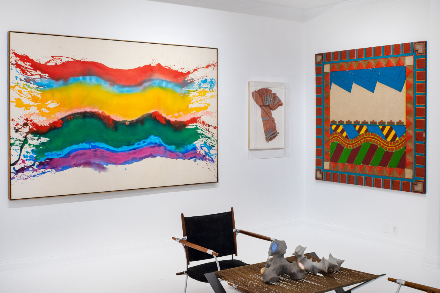 Firestone was sold when Yankowitz pulled out Sagging Spiro (1969) from her "Draped Painting" series of linen panels. “They feel so relevant and fresh and in dialogue with multiple artists,” says Firestone. “Once people know about this work. I think it's going to be a revelation.” The mixed media piece, which hangs front and center of Firestone’s Newton Lane outpost in East Hampton, sings with the same harmony as Sam Gilliam and Katherine Grosse, though Sagging Spiro predated the artists by three and 30 odd years, respectively. The work is a perfect introduction for the mixed-media exhibition, which plays with Long Island’s geographic surroundings, the beat-poet vibe of the '60s- and '70s-era Hamptons and general energetic joy in the unsung.