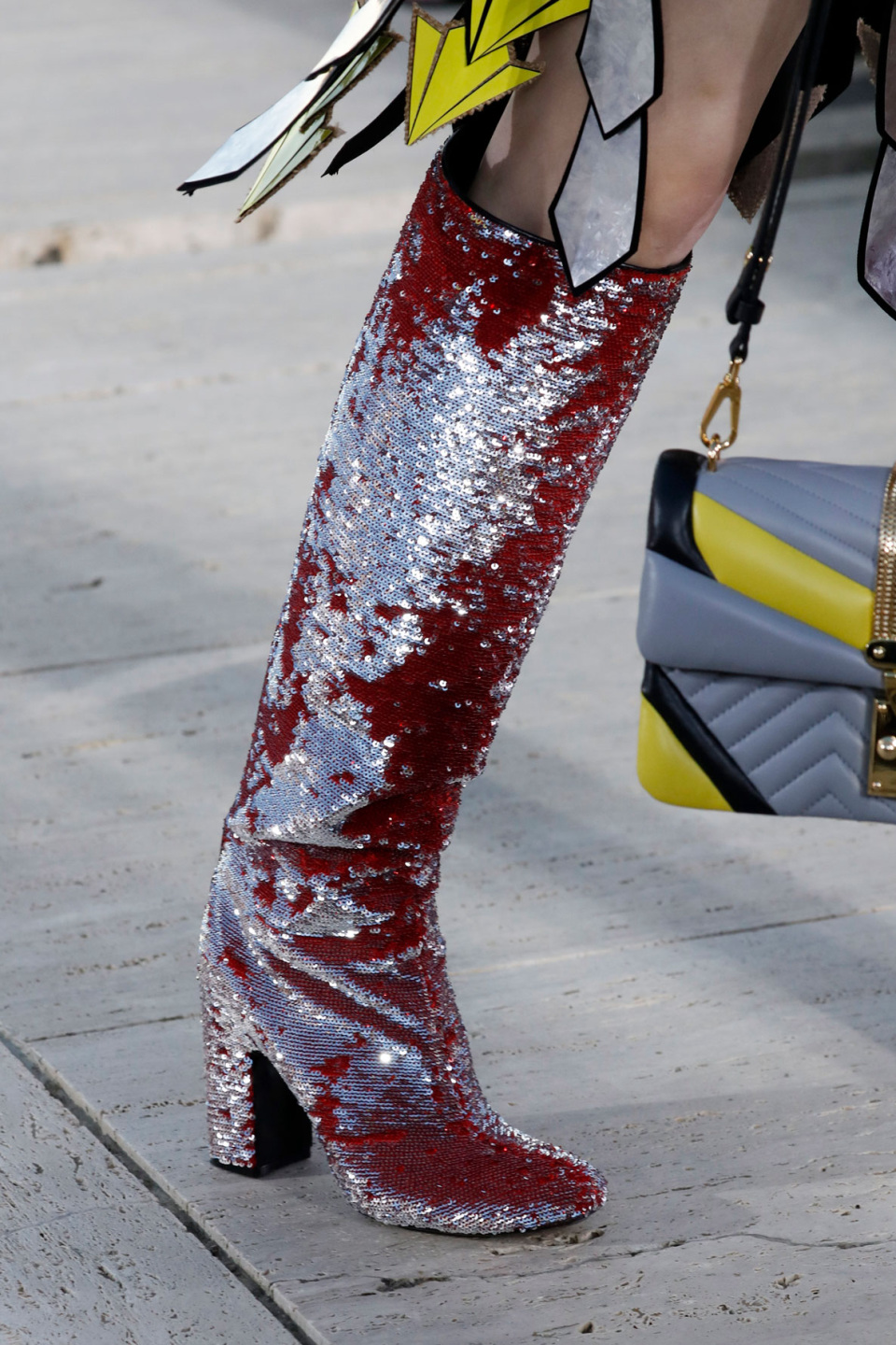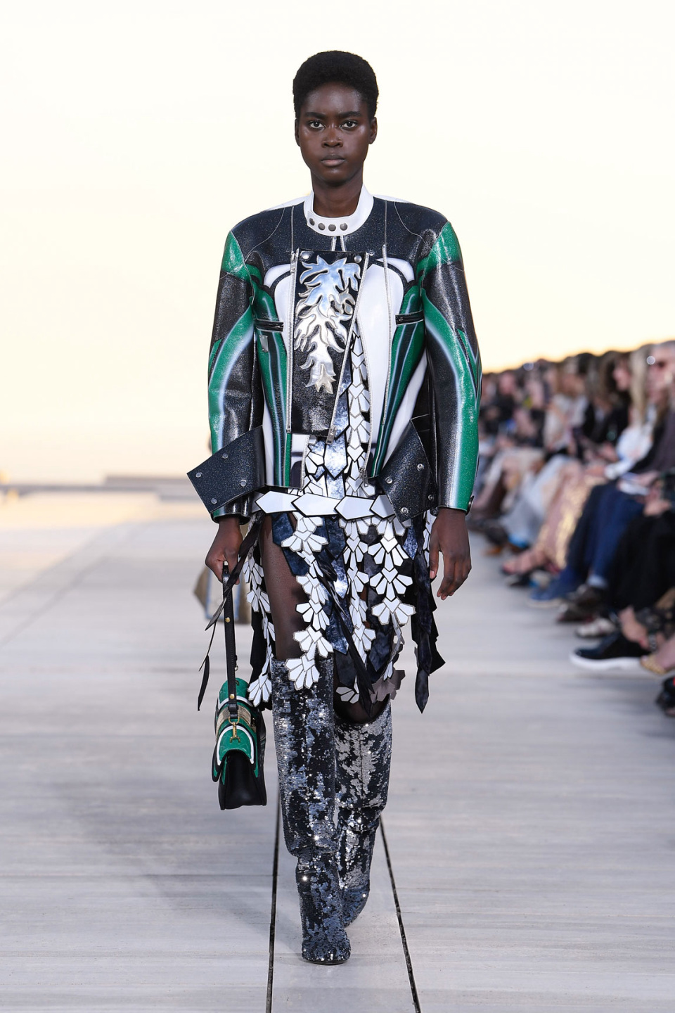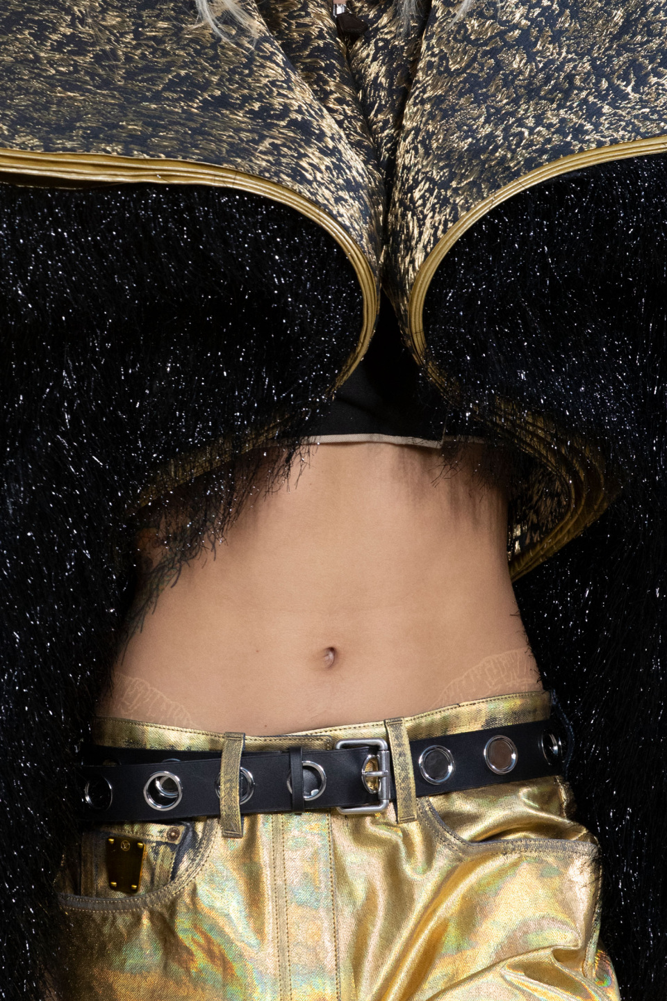 leather mail. A trio of oversized angular cropped jackets trimmed with metallic tinsel fringe marked the end of the fashion show,