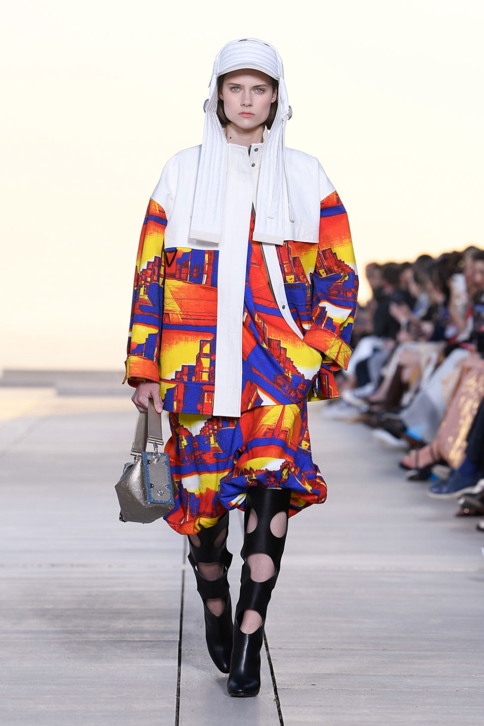 Since Ghesquière joined the fashion house in 2013, Louis Vuitton’s show locations have taken up his interest in places of architectural significance. His second Louis Vuitton Cruise, in 2015, saw models lap the poolside perimeter of the John Lautner-designed 1979 Bob Hope house. In 2019, Eero Saarinen’s then newly-restored 1962 TWA Flight Center played runway to heels on its iconic chili pepper-red carpet while the Solari split-flap display kept ticker board time. In between, Oscar Niemeyer’s 1996 Niterói Contemporary Art Museum Brazil (2016) and I. M. Pei’s 1997 Miho Museum outside Kyoto, Japan (2017) gathered the fashionable set for these living presentations of collections for the season ahead.