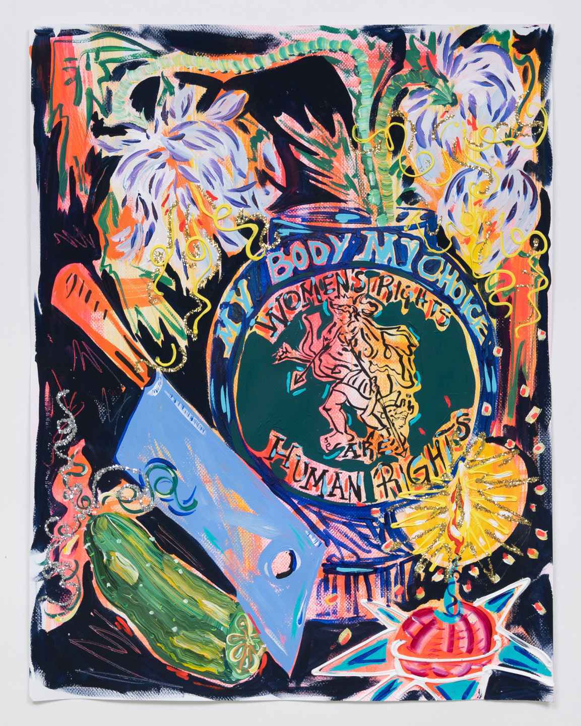 As Americans process and confront the Supreme Court of the United States’s recent decision to overturn Roe v. Wade, creatives are using their talents to speak out. When the news broke, Anat Ebgi Gallery director Alex Rojas was moved to help support abortion rights. Thus, she invited more than 40 female Los Angeles-based artists to create posters as a visual protest in solidarity with reproductive rights. Today through July 29, in partnership with Los Angeles’s Anat Ebgi Gallery and Artsy, the works go up for online auction, will all proceeds benefiting the Women’s Reproductive Rights Assistance Project (WRRAP)—the largest national, independent and nonprofit abortion fund in the U.S. that provides urgently-needed financial assistance to individuals seeking abortion services or emergency contraception—and California Latinas for Reproductive Justice.