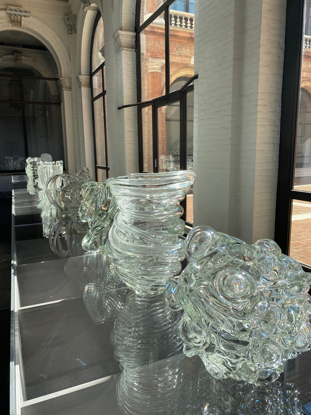 At the Accademia, the eminent glass artist Ritsue Mishima has staged a large show of her transparent pieces in conversation with works in the collection and the architecture of the museum. The highly reflective, even wet-looking, glass meteorites and vessels are hypnotically interspersed with plaster casts by Canova. At times, the monumental arrangement of hundreds of sculptures seems to spill through the galleries and staircases like a frozen stream. It is definitely worth a visit!