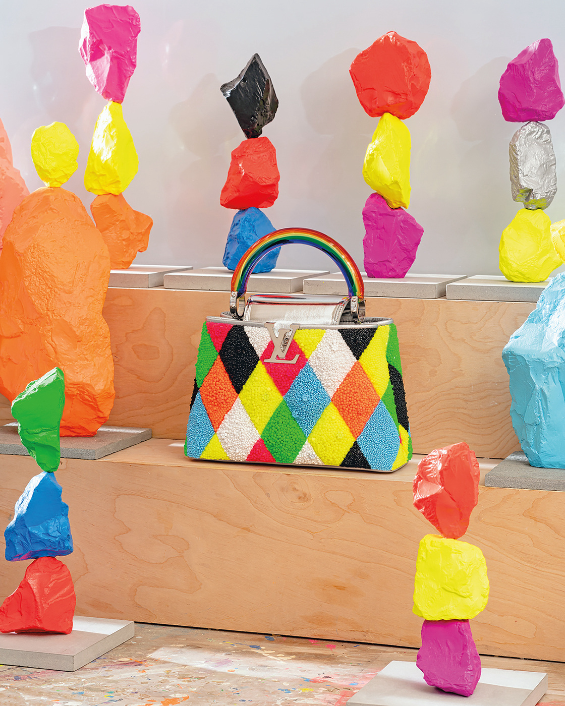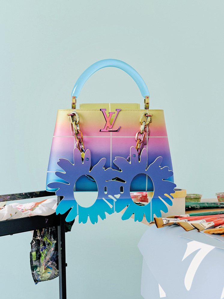 Featuring artists like Alex Israel, Beatriz Milhazes, Urs Fischer, Vik Muniz, Paola Pivi, and Henry Taylor, one could mistake Louis Vuitton’s Artycapucines collaborations for the roster of an epic exhibition of some of the best contemporary art talents working today. Launched in 2019 and now in its fourth edition, the Capucines-as-canvases initiative allows a select group of creatives to reimagine one of the fashion brand’s most iconic bags. This fall, six more global artists have introduced nine new limited-edition designs to the ongoing collection. For these 2022 Artycapucines, craftsmanship shines and materiality reigns: hand-stitched beads, 3-D printed leather, and embellished calfskin prove that when creativity is encouraged to flourish, flourish it does.