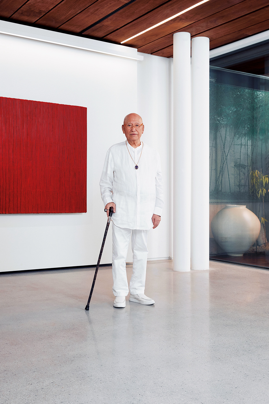 Korean artist and Dansaekhwa movement co-founder Park Seo-Bo found his inspiration in one of his own paintings, a 2016 work from his "Écriture" series that boasts an intense red color. The bag’s textured surface was achieved with the assistance of his designer grandson, Park Jifan. A 3-D printed rubber injection recalled the artist’s sensory memory of a vibrant colorscape in Japan’s Mount Bandai valley: “The color was so intense that it felt like I was looking at a flame that was chasing me to my death,” Park explains of the experience. “That moment acted as a reminder that I’m only a tiny being in front of the vastness of nature. As the wind blew the clouds and the sunlight shone, one side of the valley remained neon red, while the other side became shaded and much darker. I thought I should paint this ‘harmony of nature.’”