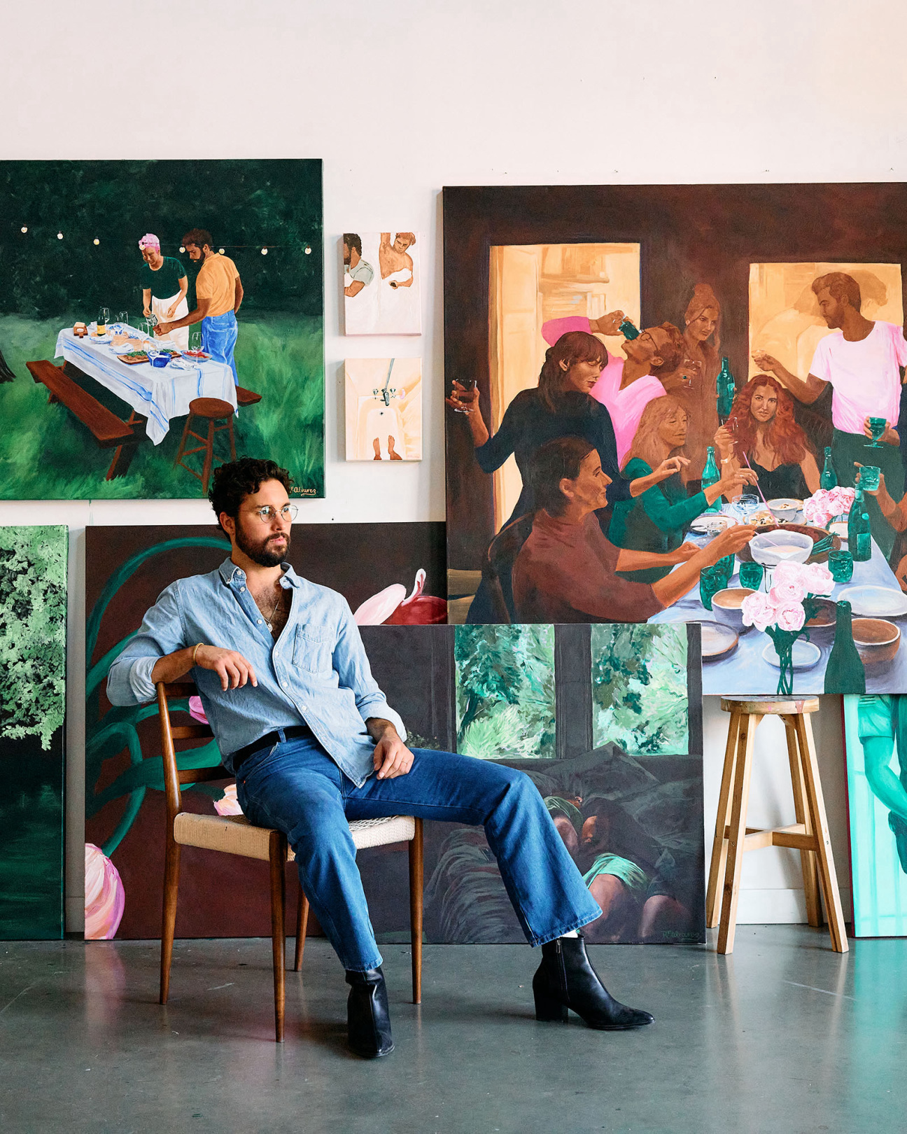 Portrait of Doron Langberg in his studio by Gillian Laub.