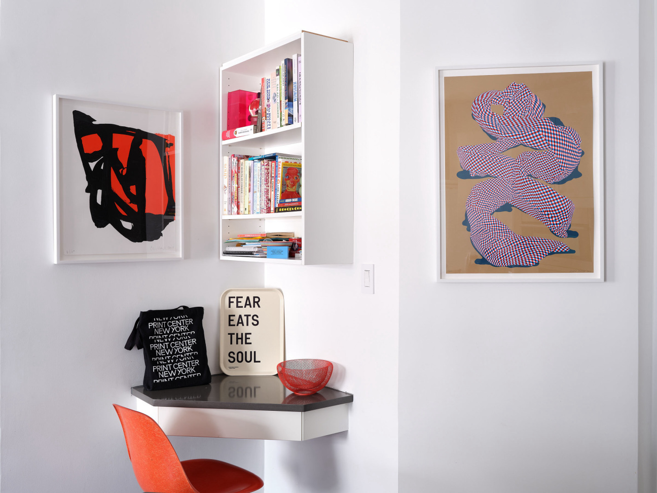 Hecker: Last year I bought a 2018 multiple by Rirkrit Tiravanija at the Printed Matter NY Art Book Fair. It is a tray, like a cafeteria lunch tray, screen printed with the text: FEAR EATS THE SOUL. It’s propped up in my kitchen. If you know Rirkrit’s work it makes perfect sense. Others have asked, “What’s that?” and I explain that he’s an artist whose work involves shared community activity like cooking and eating, and his objects relate to these activities or utilize provocative phrases.