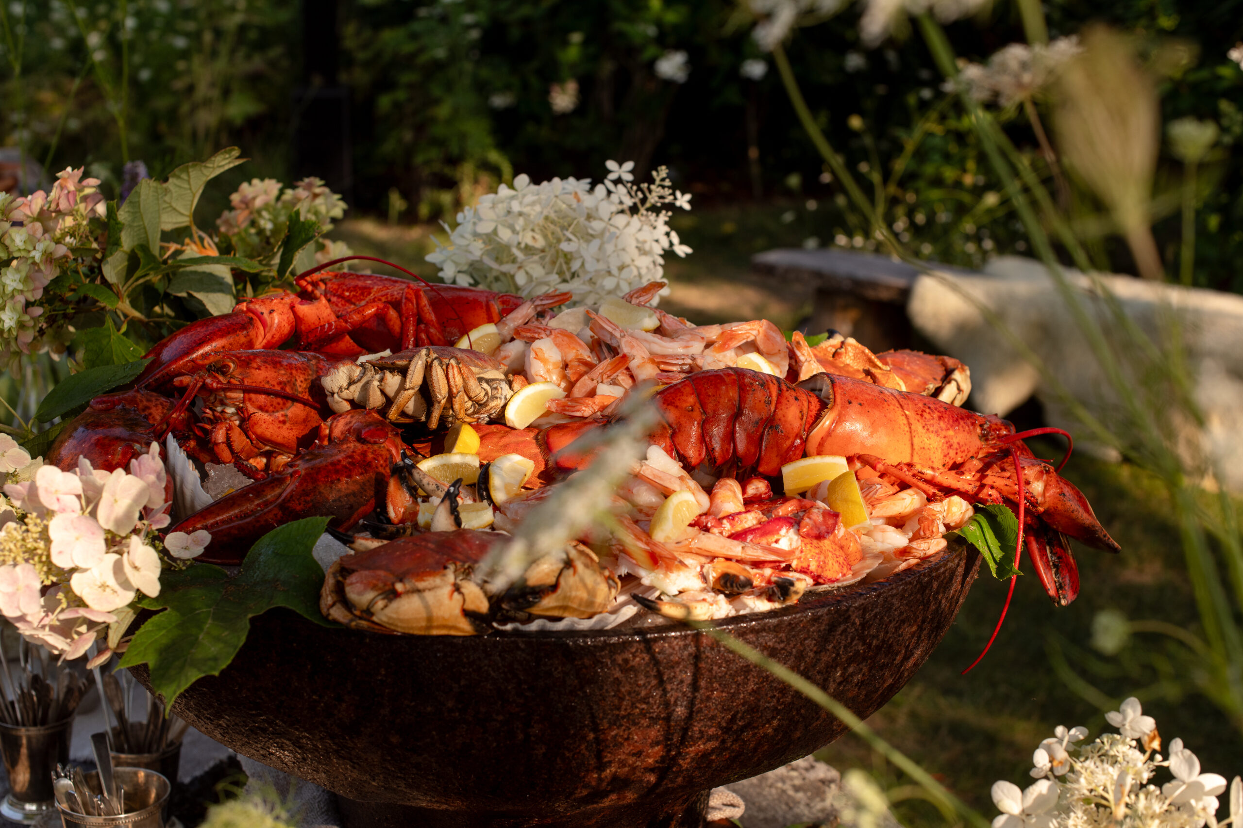 Food and Drink: Drinks came courtesy of Casa Dragones, recognized for its long-standing dedication to the arts, whose small batch tequila was served in a signature cocktail bringing notes of chamomile and sherry. The potluck spread by chef Chris Kronner was a late summer cornucopia: fresh-picked strawberries, heirloom tomatoes, tangy sourdough, nutty wheels of cheese, sweet peppers, and lobster and shrimp grilled over an open fire.