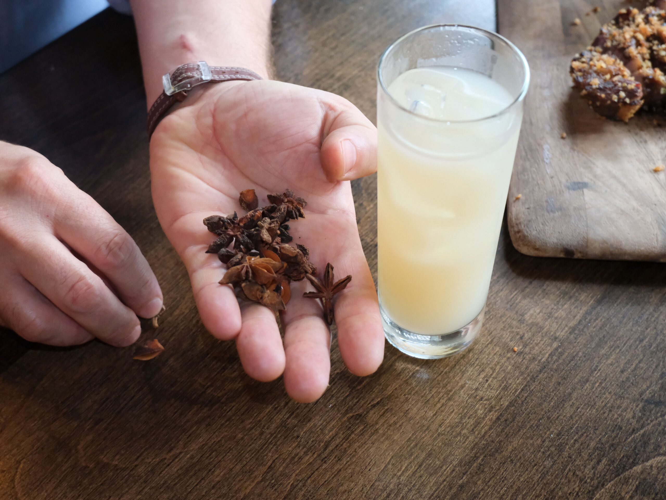 I remember as a child, my parents used to drink it in the summertime, and I used to run around with other kids getting all sweaty and so thirsty and begging for some to drink. They would just put two or three drops, so I got a taste for this flavor as a child and fell in love with it. I would serve this as a very simple cocktail with just iced water and a fennel frond for garnish.