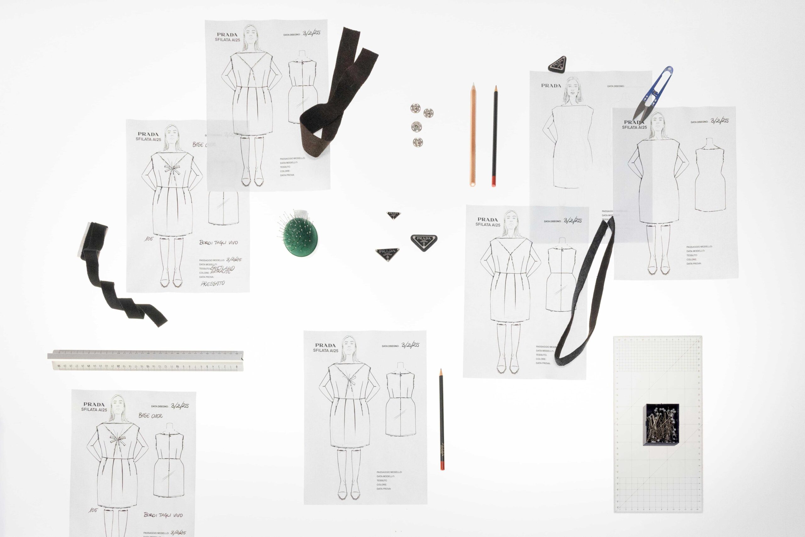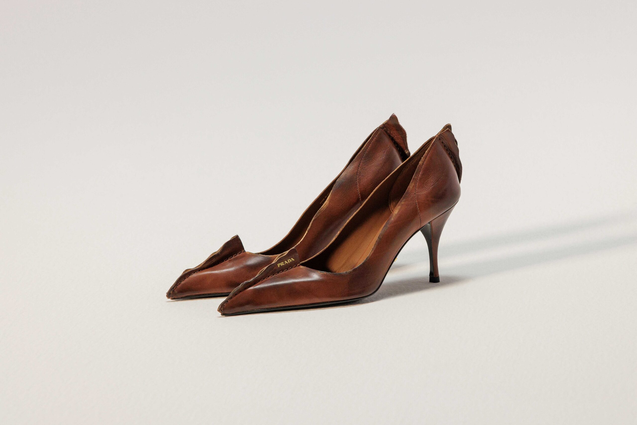 Atelier shots show a pump from the Fall/Winter 2025 collection being sanded and scuffed by the team—a process of deliberate undoing. Eventually, the pointed toe will be further softened by the wear of its owner, the only proof of its pristine origins being the Prada label added as a calling card to the front of the heel.