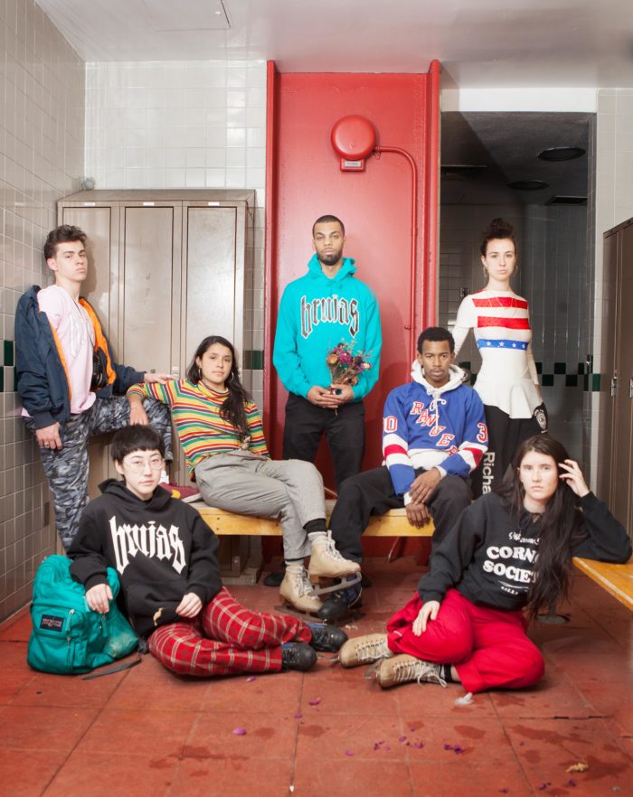 I first ask Gil, an Oberlin graduate who will turn 25 this year, if Brujas’s mission feels more urgent and immediate today under the Trump administration, than during the Obama era when it was founded in 2014. “To be honest, I’ve been completely ignoring that. It’s just always been the same goals, be it Obama or Trump.” Soprano, referred to by Gil as Brujas’s “political consigliere” interjects, “Well we did put out 1971, with the aim to materially support poor people in these times.” The Brujas x 1971 P.E. streetwear collection (the double entendre behind P.E. meaning physical education/political education) was an incredibly successful social justice project that empowers and protects QTPOC inmates in New York State prisons. The limited-edition line refers to the year of the historic Attica Prison Riot in upstate New York, and in 2016 on its 45th anniversary, Brujas raised close to $25,000 on Kickstarter—a large portion of which was donated to F2L (Freedom 2 Live), a QTPOC-supporting prison reform group.