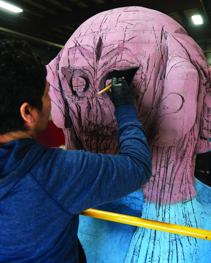 She thinks of the sculptures—which more often than not stand vertically, like humanoids or totems—as characters. They are neither male nor female but hermaphrodites whose personalities, or spirits, she discovers in making them, first by roughing out sketches, then by hewing into the material. Rather than conveying a concept, she hopes they radiate intensity.